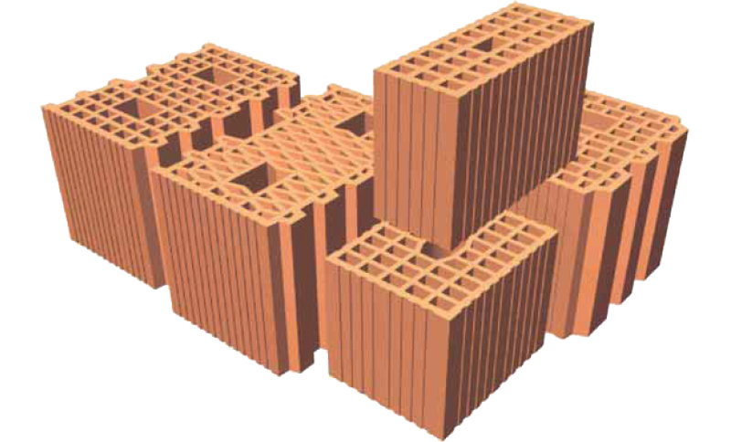 Ziegelblöcke für den Bau von tragendem oder nicht tragendem Mauerwerk und Zwischenwänden.